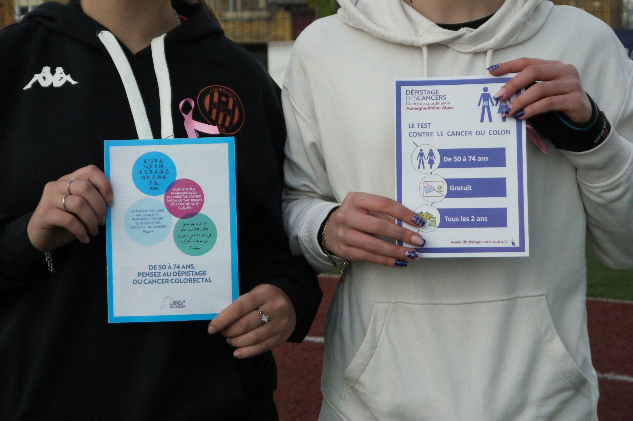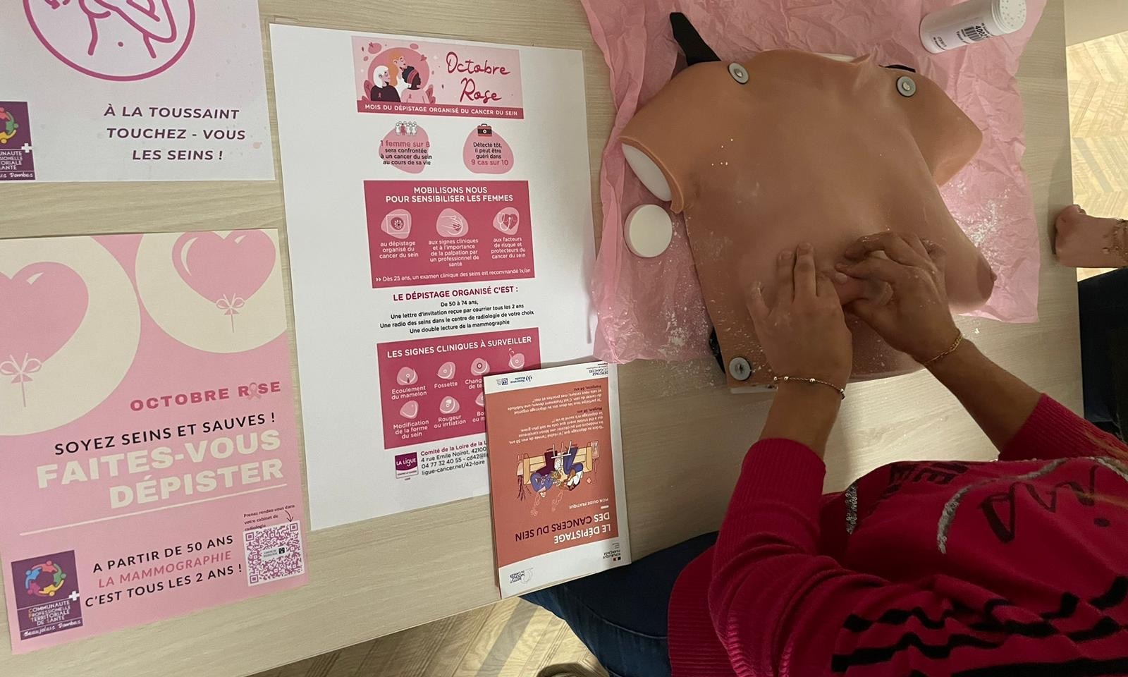 🎁 Stylos, rubans roses et flyers distribués pour prolonger la sensibilisation autour des différents dépistages.